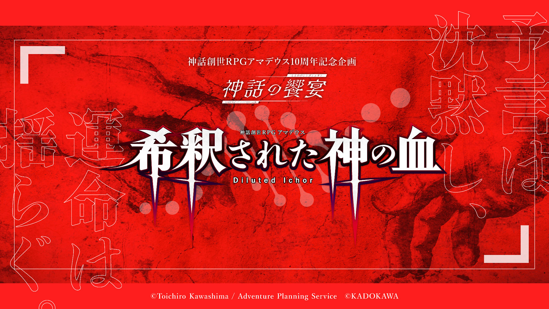 神話の饗宴(しんわのシンポシュオン)は「神話創世RPGアマデウス」10周年を記念非公式企画です。現在出ている神群すべてのシナリオや、セッションに使える素材を掲載し、アマデウスをお祝いする目的で立ち上がりました。
