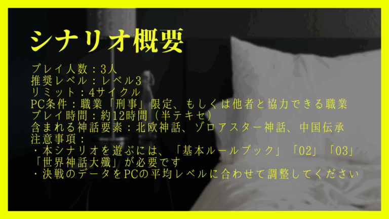 ・本シナリオを遊ぶには、「基本ルールブック」「02」「03」「世界神話大殲」が必要です